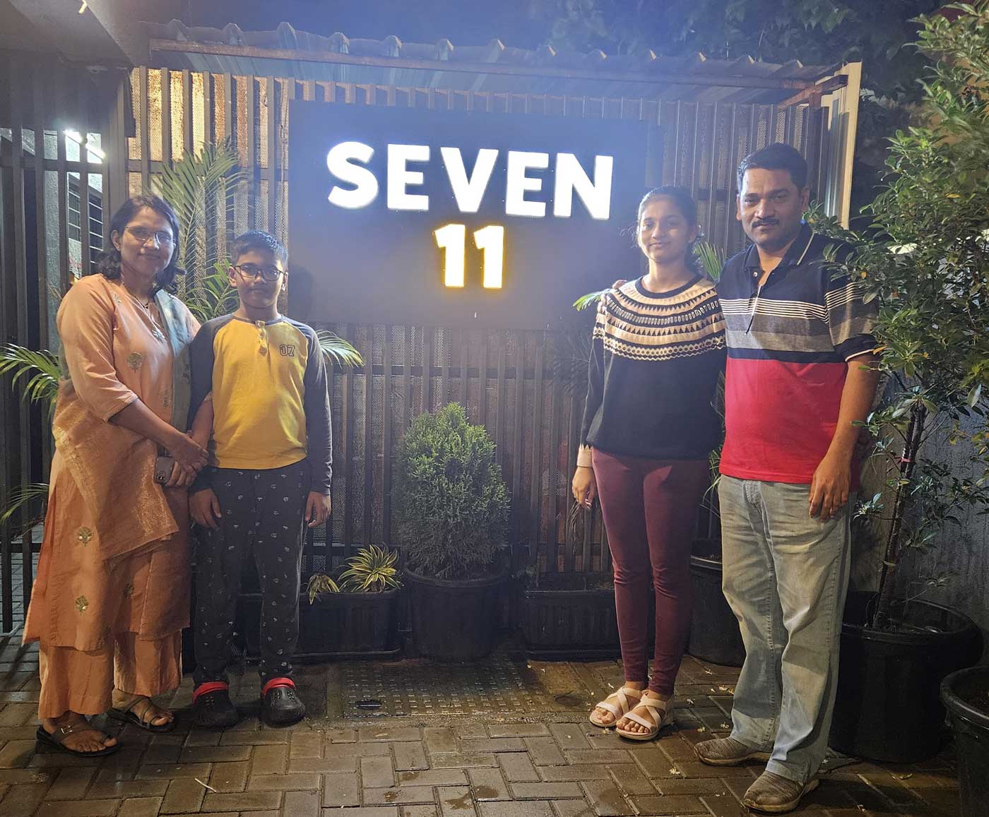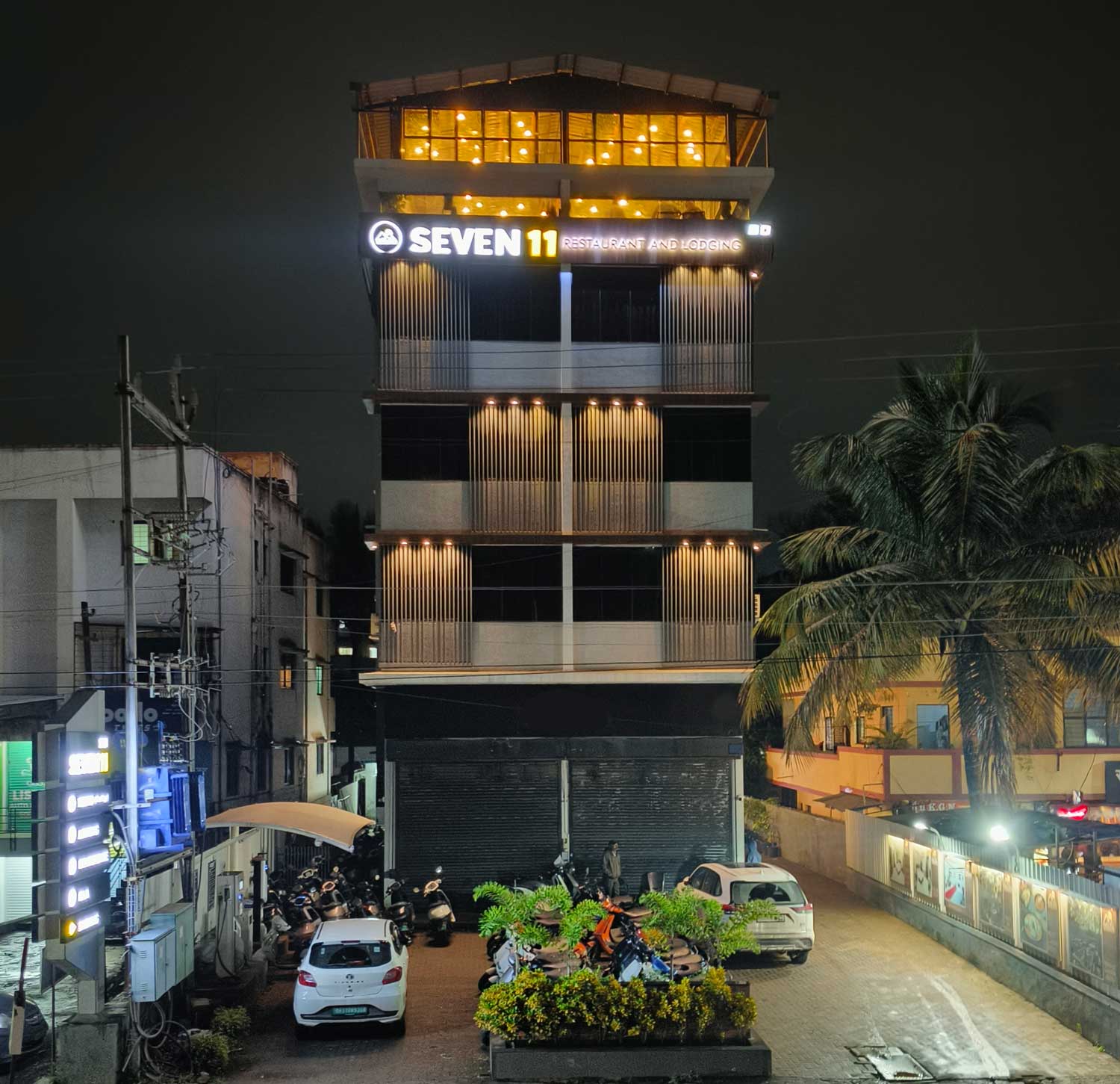 Enjoy a delicious selection of veg and non-veg dishes from βSeven11β Rooftop Restaurant
